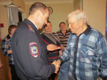 На днях руководительОВД Невьянска полковник полиции Сергей Горбунов, вместе с начальником кадрового подразделения райотдела отдела подполковником Евгением Поповым и председателем местной ветеранской ячейки Людмилой Валиулиной навестили и поздравили с 94-летием участника Великой Отечественной войны, много лет отдавшего службе по охране правопорядка, Василия Михайловича Шмакова.